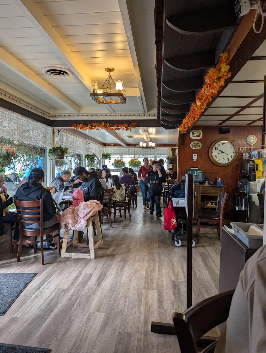 Food was delicious! Do get there early (6am-7am) or you will be out on a wait list. We had a party of 5 and had to wait 45 minutes at 8:30am. Food came out in less than 10 minutes. Lots of inside and outside seating but it was a tad cold so we opted for inside. A must visit for anyone who has never been to this nice little town.